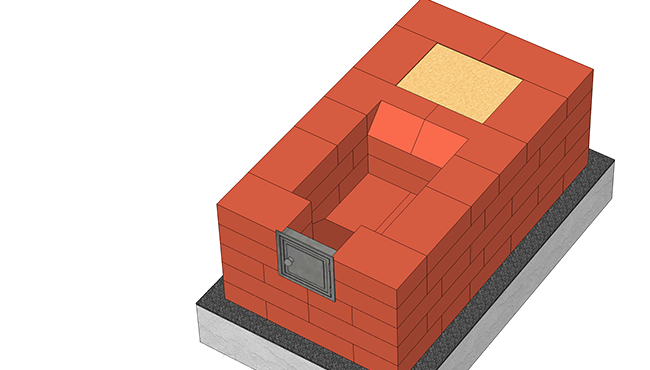 - Восьмым рядом завершают перекрытие зольника, а на 9–14 формируют топливную камеру из шамотного кирпича.