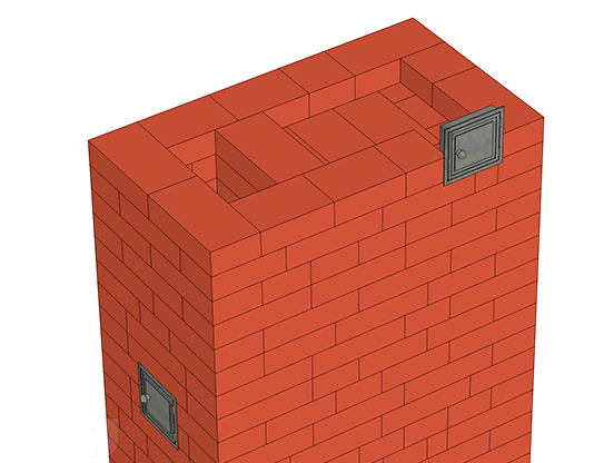 Установка дверцы для очистки дымохода выполняется на 15 ряду