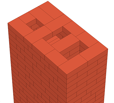 - До 13 ряда формируют пространство над плиткой. Кирпичи выкладывают строго по схеме.