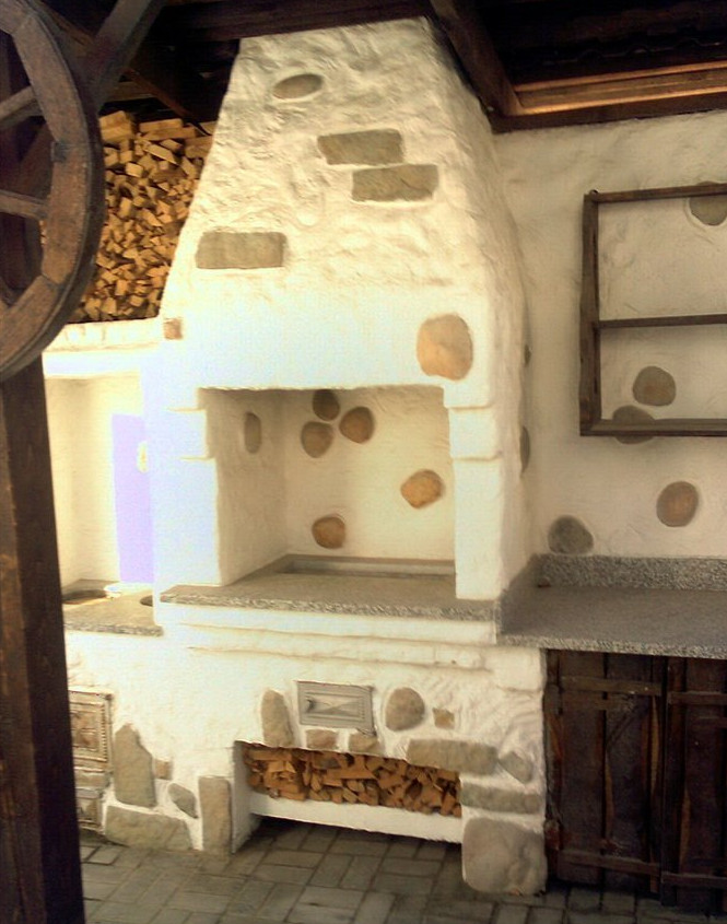 Печь, оштукатуренная в стиле кантри, — отличный вариант для дачи или загородного коттеджа