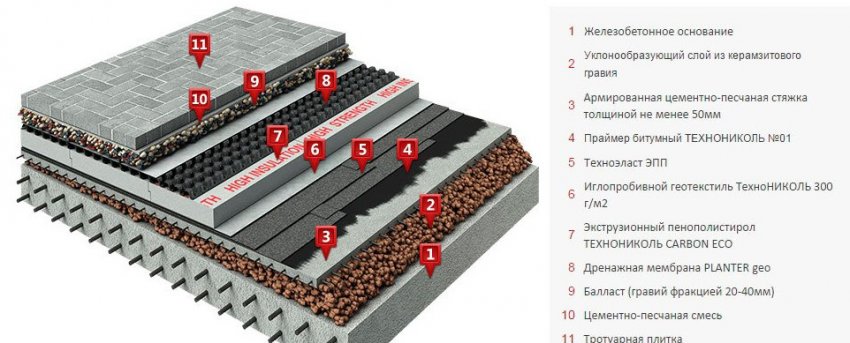 - Для эксплуатируемых плоских кровель существуют свои готовые решения, проверенные и прошедшие испытания в разных условиях. Застройщикам теперь не нужно ломать голову над проблемой, какой положить пароизолятор, и нужен ли он вообще, чем утеплить и как усилить кровлю, не утяжеляя её и т. д. Все эти вопросы уже продуманы мастерами. Остаётся только приобрести готовую подходящую систему и уложить её собственными руками, не отходя ни на шаг от инструкции. Более востребована из этой серии в малоэтажном жилищном строительстве система «ТН-КРОВЛЯ Тротуар КМС», которая разработана с учётом пешеходных нагрузок. Её применяют для рационального использования крыши — отдыха, например. Или система «ТН-КРОВЛЯ Терраса» для устройства зелёной (огород или оранжерея) кровли.