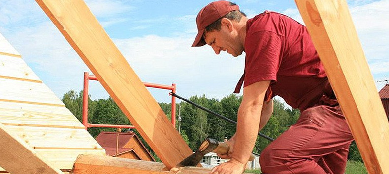 - Набивают планку в торцах, выставляя по уровню со стропильными ногами.