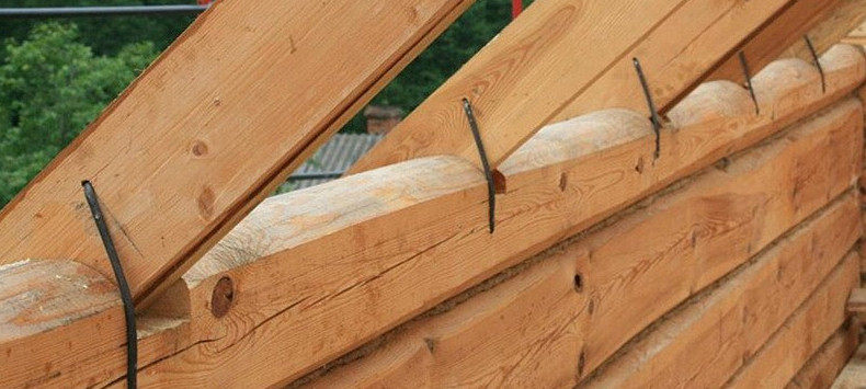 Узел крепления стропильных ног к мауэрлату выполняют при помощи скоб или металлических уголков