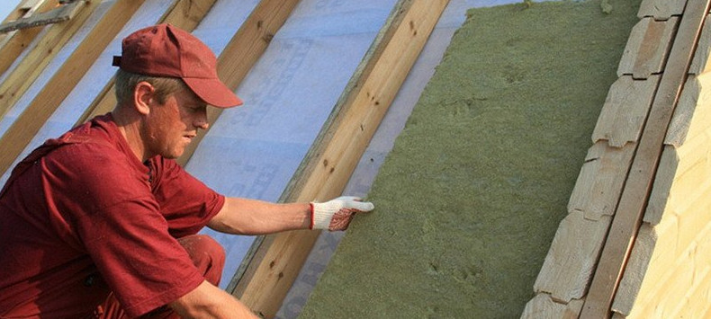Теплоизоляцию из каменной ваты укладывают между стропилами в 2−3 слоя
