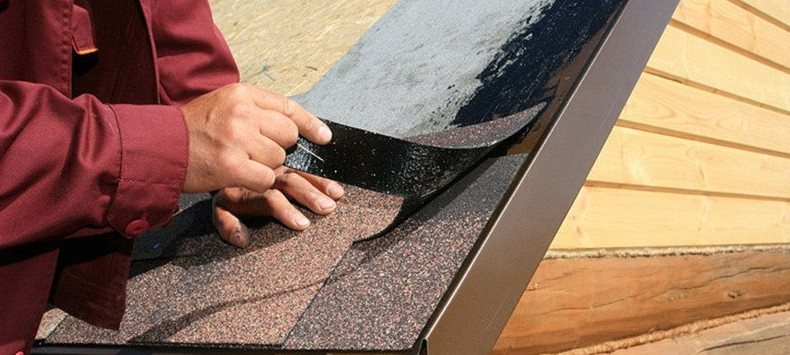 Чтобы защитить мягкое покрытие кровли от затекания воды во время косого дождя, вдоль всего фронтона на ширину около 10 см черепичные гонты укладывают на промазанное мастикой основание