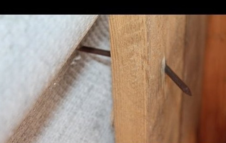 Шифер прикрепляется к каркасу при помощи гвоздей или саморезов. Гвозди, вышедшие за границу каркаса, надо обязательно загнуть