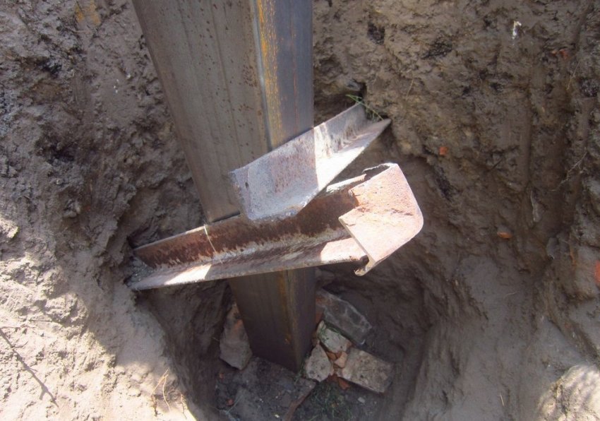 - Установить столбы. Опорой могут послужить уголки из металлического профиля или куски труб. Эти составляющие вместе со столбом в дальнейшем нужно заливать бетоном или цементом. Дистанция между столбами не более двух с половиной метров.