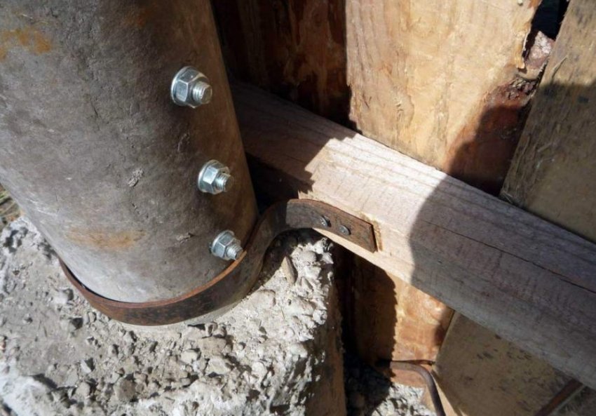 - Установить прожилины. Между столбами нужно закрепить горизонтальные планки, которые обычно выполняются из бруса, а при бюджетном строительстве — из жердей. Эти элементы нужно закрепить шурупами. Если прожилины делаются из профильной трубы, их монтируют при помощи сварочного аппарата. За неимением такого инструмента можно высверливать отверстия в железных столбиках и закреплять любой вид жерди на болты. Когда эта часть работы выполнена, каркас забора желательно защитить автомобильной мастикой. Обычно стараются наносить более одного слоя, тогда конструкция каркаса будет полностью защищена от коррозии.