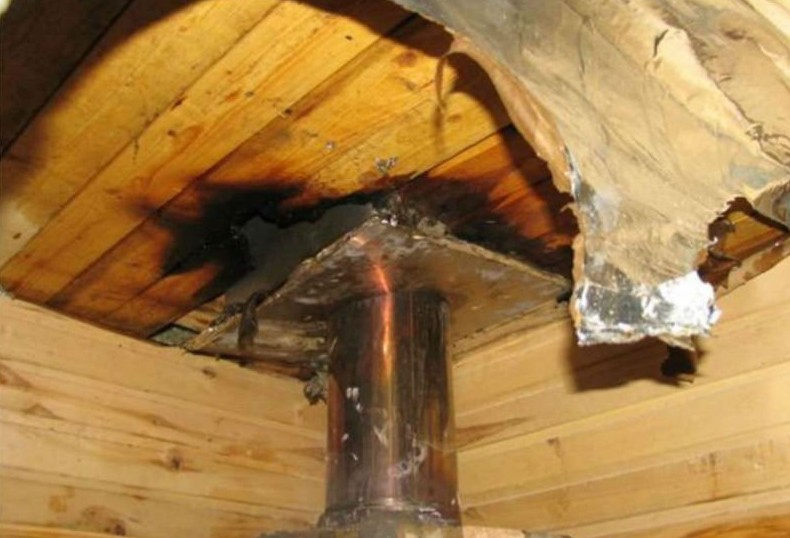 При неправильно выполненной теплоизоляции перекрытий деревянные конструкции рядом с дымоходом могут загореться