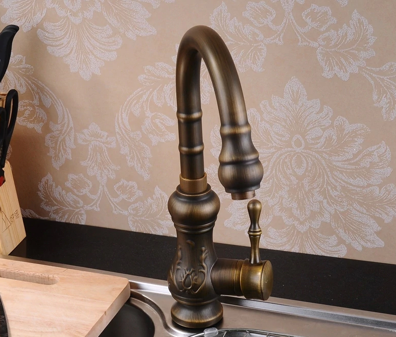 Смеситель медного цвета легко сочетать как с каменной, так и металлической мойкой