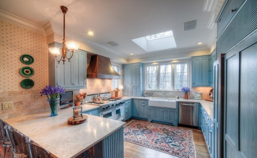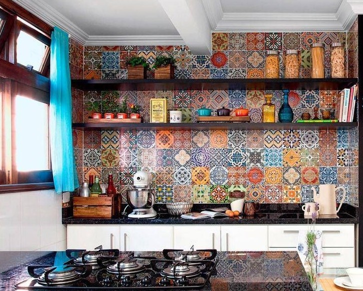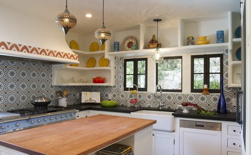 Пёстрый орнамент лучше всего повторить в нескольких областях кухни