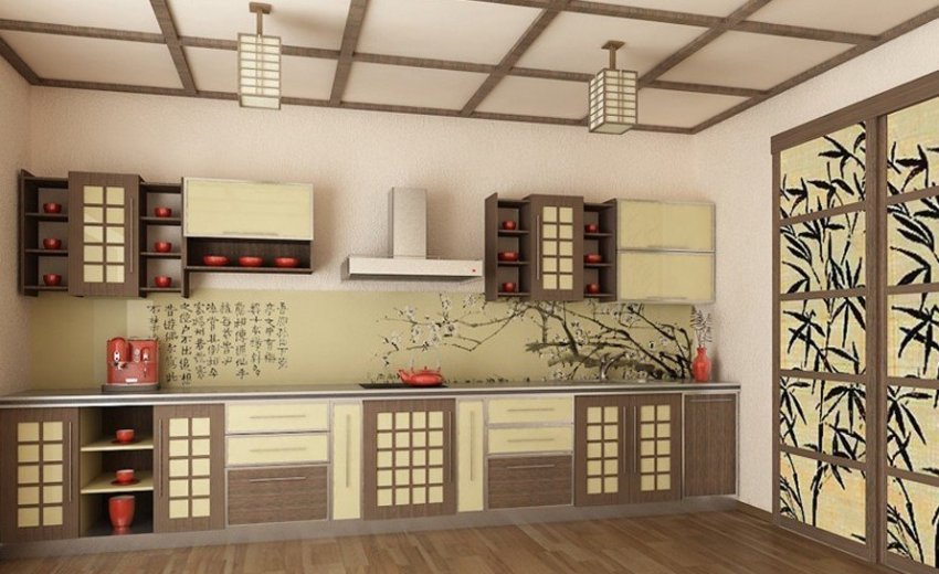 Азиатское оформление кухни всегда характеризуется этническими мотивами той или иной страны. При этом есть и общие особенности у всех видов такого дизайна: