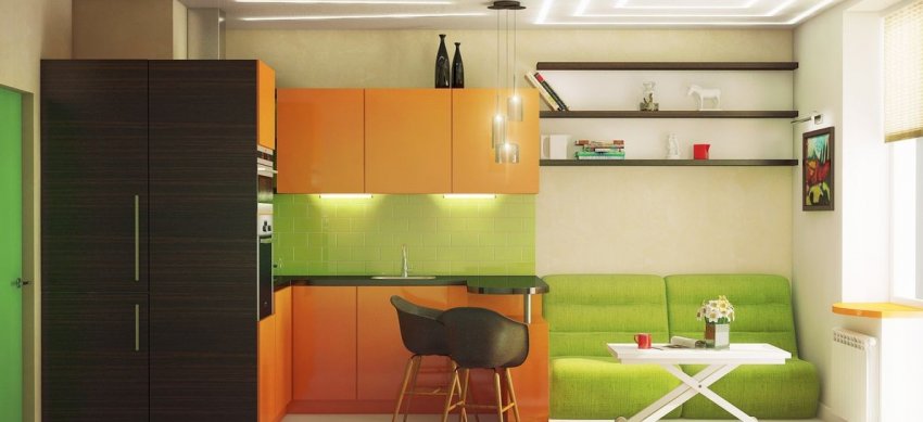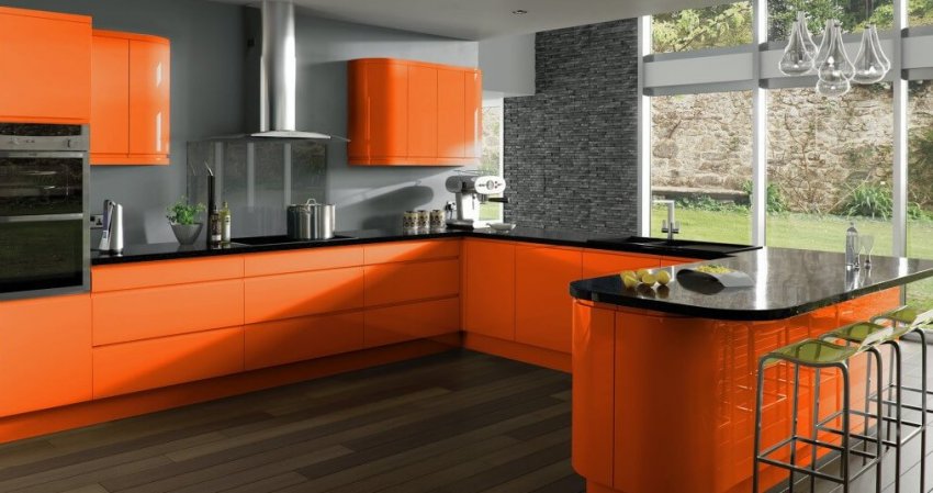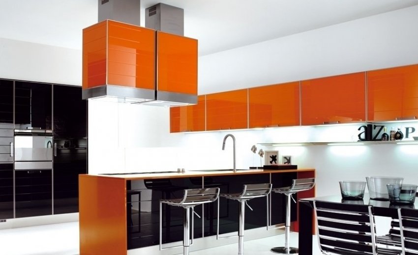 Сочный или приглушённый апельсиновый цвет может присутствовать в любом уголке кухне. При этом важно знать особенности декора яркой зоны кухни: