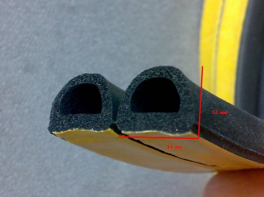 Уплотнительная лента фиксируется на самоклеящуюся основу