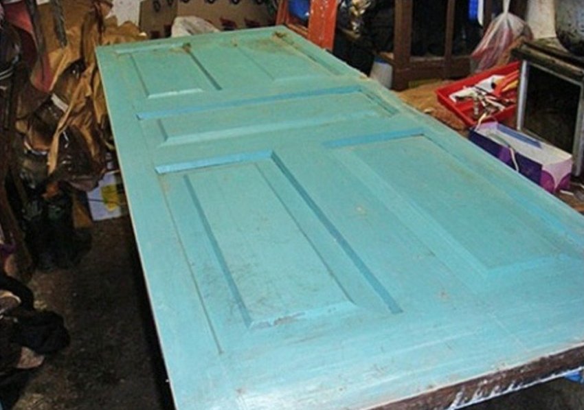 - Снятие дверного полотна. Для упрощения процесса утепления деревянной двери её лучше снять с петель и уложить на подставки, например, на 2 или 4 табурета.