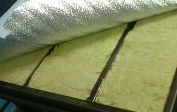 - Укладка утеплителя. В промежутки между рейками созданного каркаса устанавливают утеплитель и фиксируют его при помощи клея.