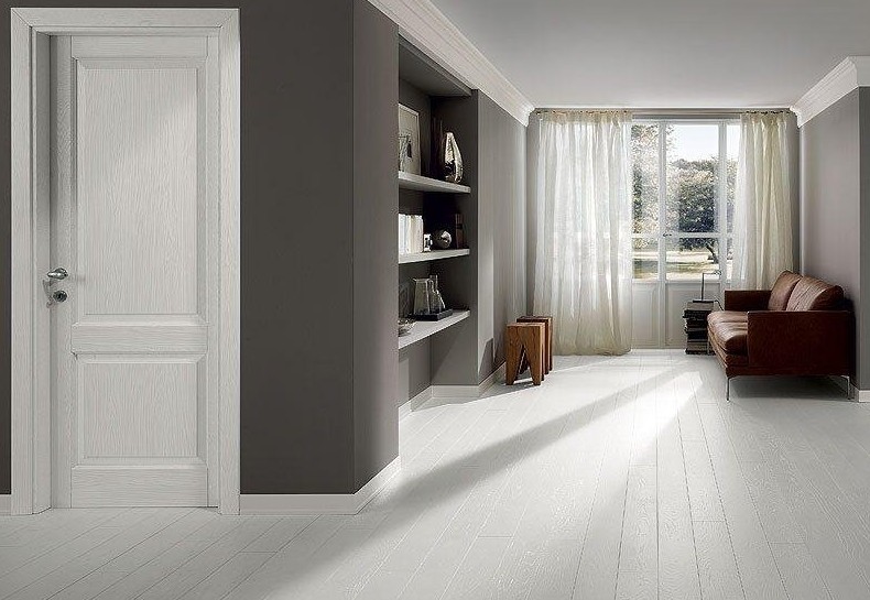 Дизайнеры используют несколько популярных вариантов комбинирования белых дверей и отделки помещений: