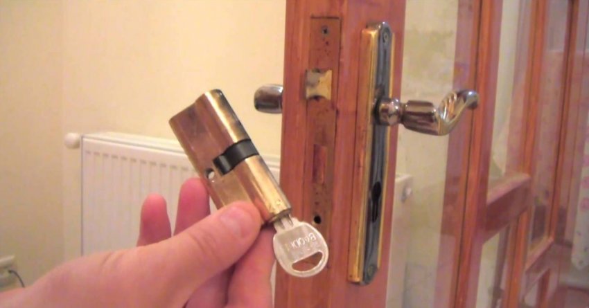 - Поломка секрета. Если замок имеет цилиндр, и он перестал открываться ключом, то надо заменить эту часть. Достаточно открутить винт крепления цилиндра, который находится на торцевой планке, после чего вытянуть цилиндр и заменить его на другой.