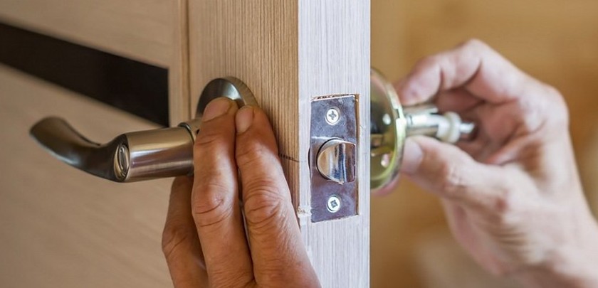 - переустановка дверного полотна. Если проводится замена двери, а на старом полотне был нормальный замок, то его можно переустановить;