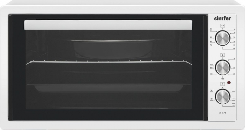 Красивая печь Simfer M4572, она мне сразу приглянулась в магазине, хотя заказывала её через интернет магазин. Привезли на третий день, коробка вместительная, кроме духовки в коробке также лежала инструкция и книга рецептов. В подарок ещё получила нарукавники. Собрано отлично, ничего не отваливается, ножки прикручиваются легко, справилась сама. Вилка жёсткая, в розетку входит туго, но зато надёжно. Шнур небольшой, всего 1 метр, поэтому советую устанавливать её недалеко от сети. После первого запуска появился запах, но это нормально для новой техники, проветрилось уже через 30 минут. Кстати, перед включением проверьте саму духовку, часто в ней остаются посторонние предметы, типа пластиковых крепежей или шурупов. А так печь отличная, попробовала приготовить пирог, получилось классно.