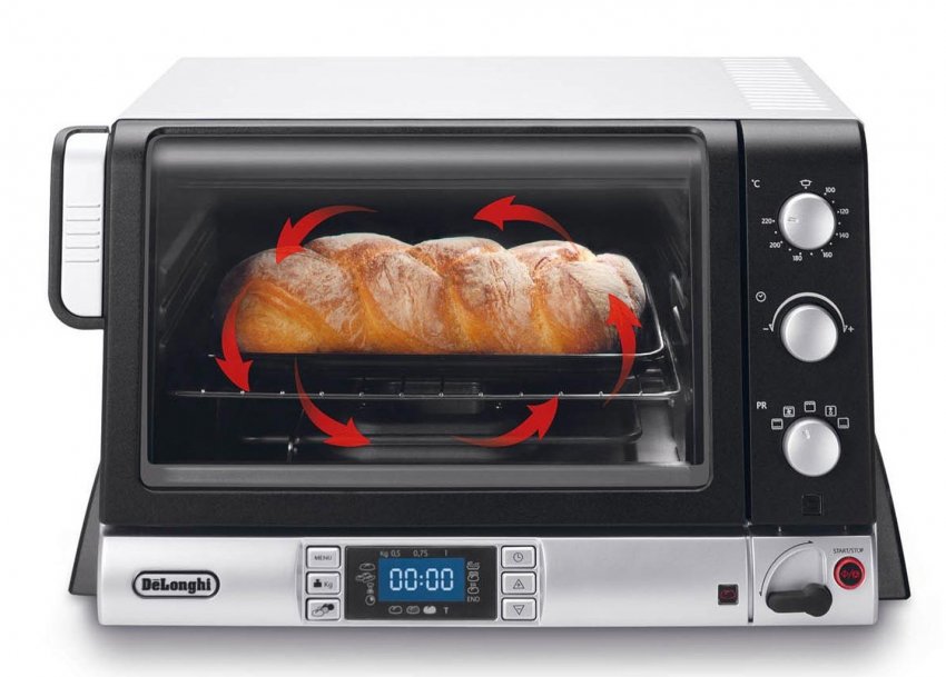 - конвекция — горячий воздух циркулирует и равномерно распределяется внутри мини-духовки при помощи встроенного вентилятора, что позволяет блюдам готовиться быстрее и равномернее;