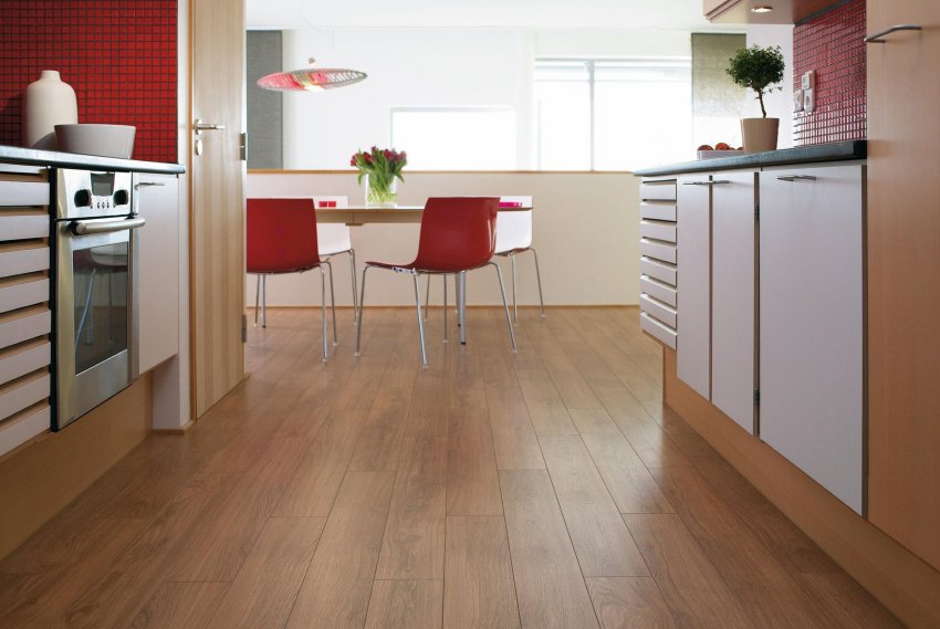 Водостойкий ламинат можно без опаски укладывать на кухне и в других помещениях с повышенной влажностью