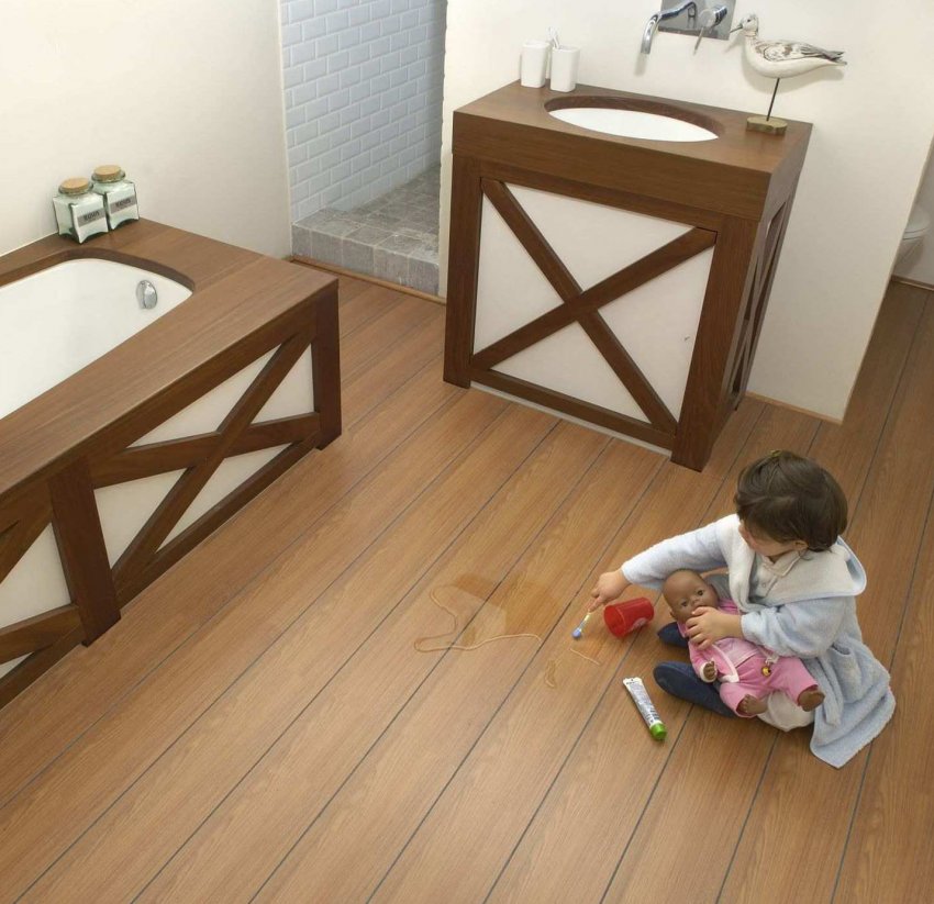 Высокие потребительские качества водостойкого ламината позволяют укладывать его даже в ванной комнате