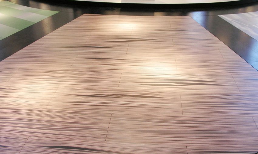 - Подготавливают поверхность, которая должна быть абсолютно ровной. Старый деревянный пол можно не снимать, но его надо хорошо отшлифовать для ликвидации всех неровностей. Щели между досками, выбоины и большие трещины нужно зашпаклевать. Если дощатый пол в неудовлетворительном состоянии, то на него укладывают листы фанеры, ДСП, ОСБ и пр. Бетонное основание выравнивается при помощи стяжки. Затем подготовленную поверхность очищают от пыли и грязи, покрывают грунтовкой.