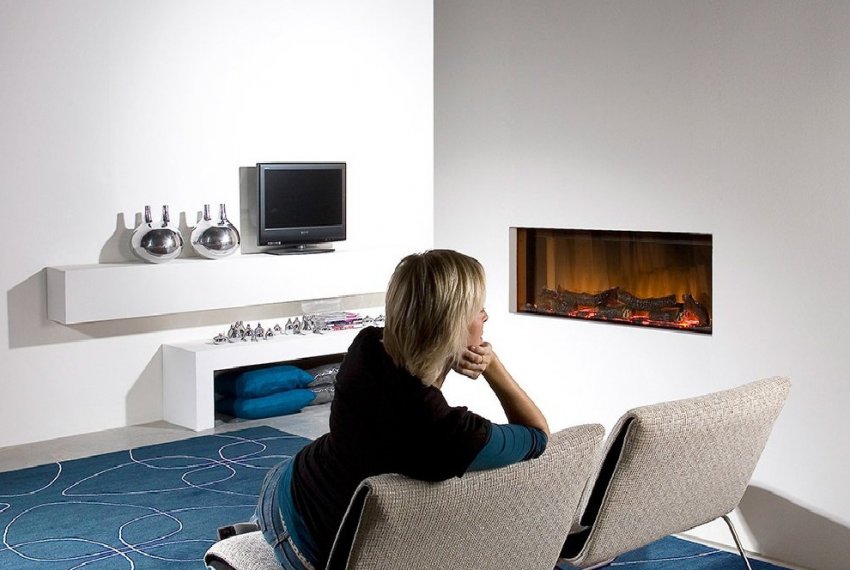 Многие модели электрокаминов легко вписываются в интерьер комнаты и не занимают места