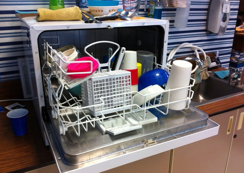 - в маленькой машинке не всегда возможно помыть крупногабаритные кухонные предметы (противни, большие кастрюли или сковородки и пр.);