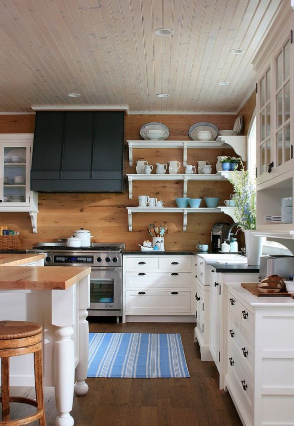 - Текстура состаренных досок используется в кухнях, оформленных в стилях кантри, прованс и шебби-шик.