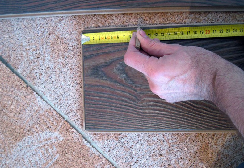 Так как ламинат будет крепиться непосредственно к стене, обязательно нужно проверить поверхность уровнем. Если стены недостаточно ровные, их обивают гипсокартоном. В некоторых случаях возможен монтаж прямо на старый фартук из плитки. Последовательность крепления: