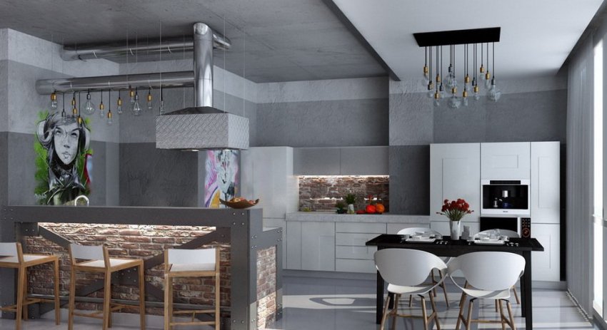 Фотогалерея: разнообразие лофта в кухонном интерьере