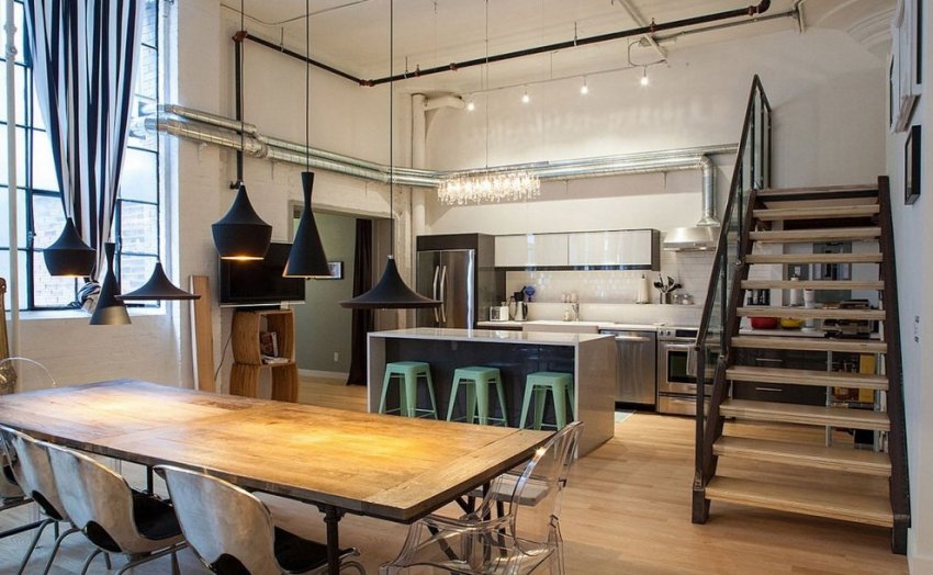 Яркий индустриальный лофт сочетает разные стили в исключительно цельном образе
