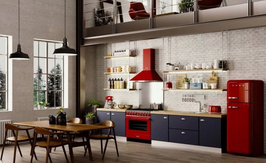 Идеальным решением для лофта станет комплектование кухни техникой в едином стиле с «вкраплениями из прошлого»
