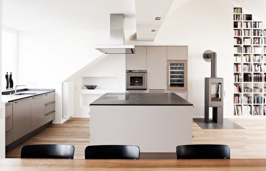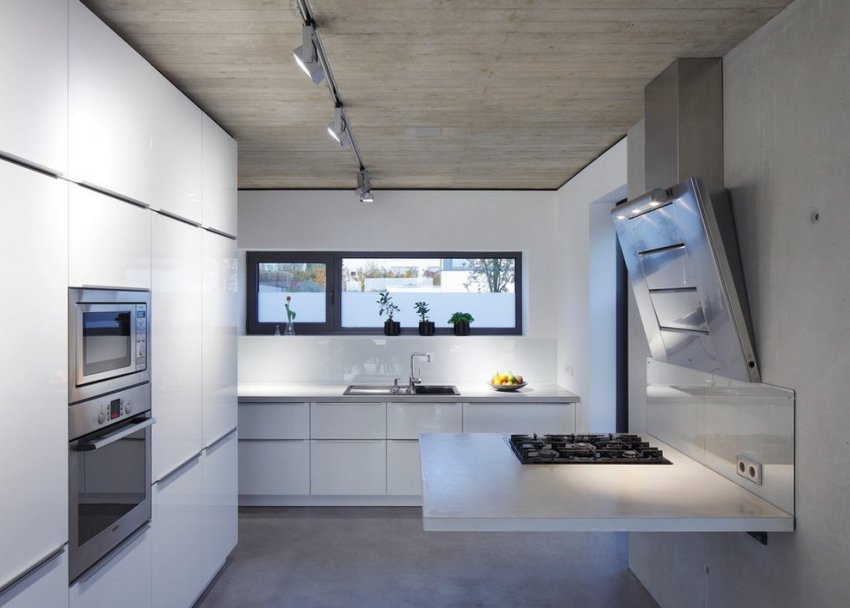 Кухонный гарнитур должен быть максимально простым и функциональным — гладкие поверхности, правильные геометрические формы и строгость дизайна