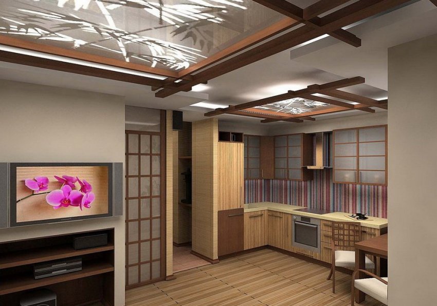 Обустраивая кухню в японском стиле, нужно помнить, что в ней должен царить свет и воздух, а вся обстановка направлена на создание расслабляющей атмосферы.