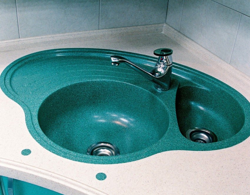 Из акрилового камня изготавливают необычные эксклюзивные угловые мойки