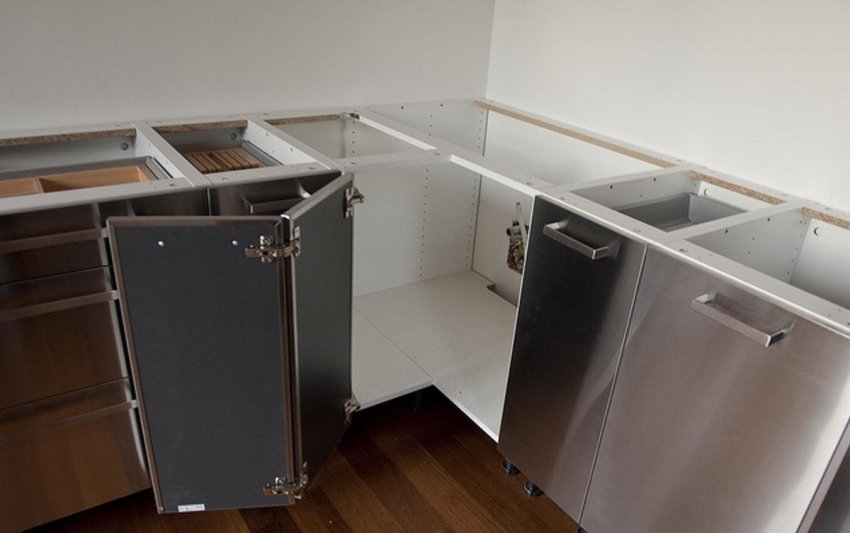 Можно изготовить угловую секцию с прямым углом и складными дверками