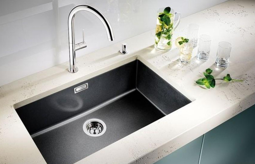 Чаще всего интегрируемый монтаж используется для столешниц из искусственного (акрилового камня). Мойка может быть изготовлена из того же материала, из нержавейки или из композитных составов.