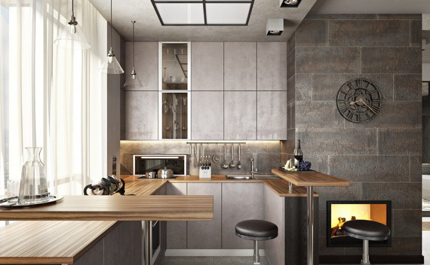 Обустройство кухни с барной стойкой, совмещённой с гостиной, осуществляется в помещениях площадью более 8 м2. При меньших размерах кухни невозможно организовать удобную зону отдыха и рабочее пространство для приготовления пищи.