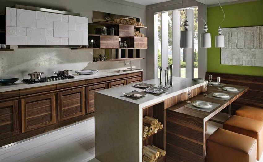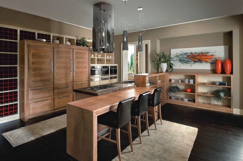 Современный стиль итальянской кухни, так же как и классический, тяготеет к натуральным материала