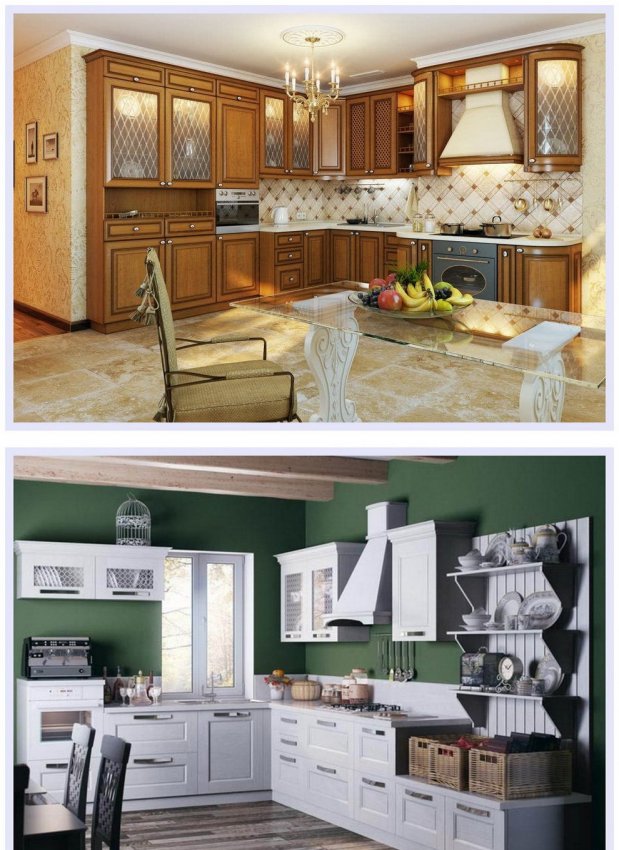 Между классическим видом и современным существует ещё одно различие, хотя оно выдерживается не всегда. Это касается размещения бытовой техники — в роскошной классике крупную технику чаще прячут за мебельными фасадами или стараются приобрести ретромодели, а в современном направлении холодильник, духовку, посудомоечную машинку и т. д. оставляют открытыми.