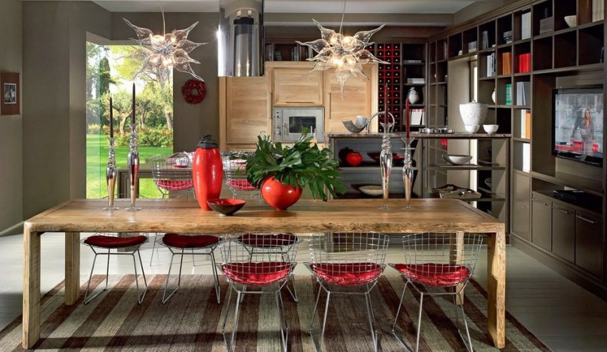 Главным элементом итальянской кухни, безусловно, является обеденный стол со стульями или длинными скамейками, выполненный из дерева