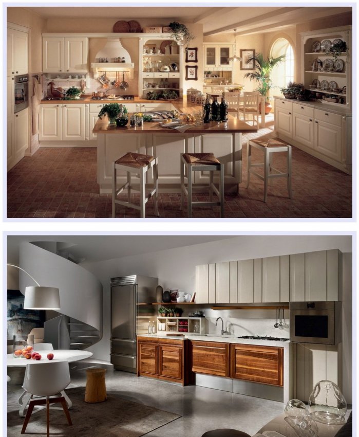 Итальянский стиль можно условно разделить на 2 вида: классическое направление и современное, представляющее собой модернизированную классику. Такое разветвление даёт простор дизайнерской фантазии и позволяет создать кухонный интерьер соразмерно предпочтениям и финансовым возможностям хозяев. Кухня по-итальянски простого дизайна (современного) или богемного (классического) одинаково великолепна и в равной мере востребована.