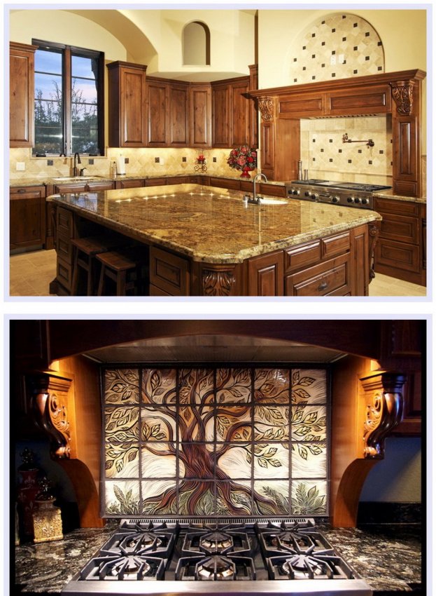 Фартук возле варочной панели или раковины может быть дополнительно украшен плиточной композицией
