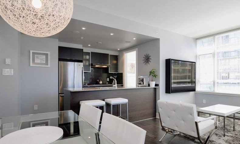 - на его фоне выразительно смотрятся металлические детали мебели и бытовой техники;