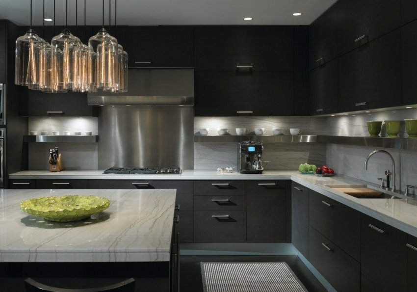 Чем больше чёрных оттенков, тем просторнее должна быть кухня