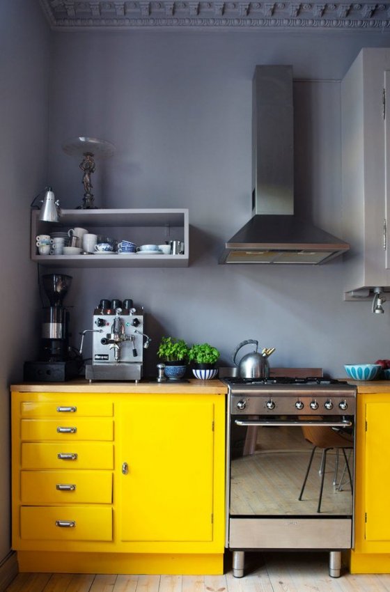 Жёлтый смотрится ярко на фоне графитовых стен