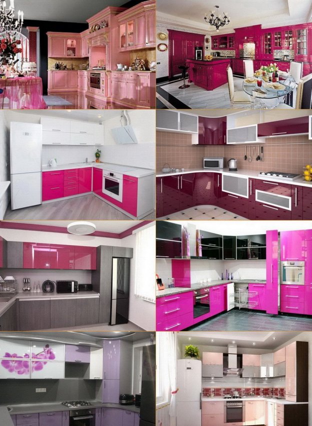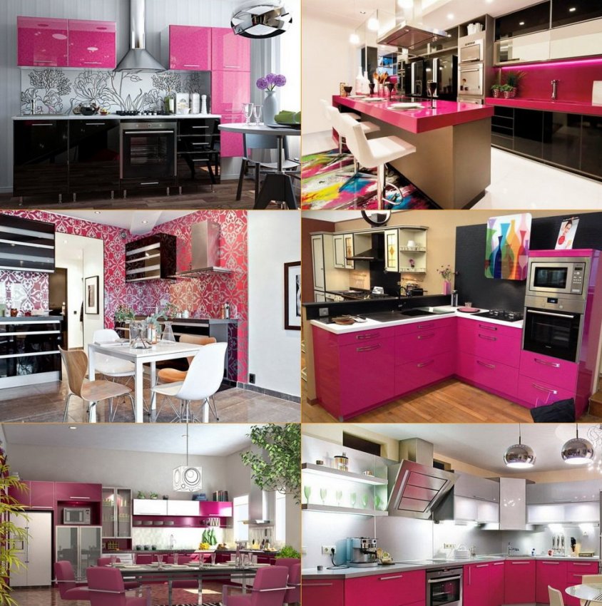 Розовый цвет включает в себя множество разнообразных тонов и полутонов — тёплых или холодных, ярких либо спокойных, дерзких и мягких. Выбрать есть из чего даже тому, кто не воспринимает розовый цвет или считает его кукольным и несерьёзным. Богатая гамма даёт простор для различных цветовых сочетаний в кухонном оформлении, что ещё больше подчёркивает оригинальность помещения.